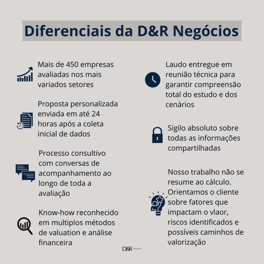 Atenção : Se você ainda tem dúvidas sobre o conceito ou processo de valuation, leia primeiro o nosso guia completo de avaliação de empresas | valuation da D&R Negócios.